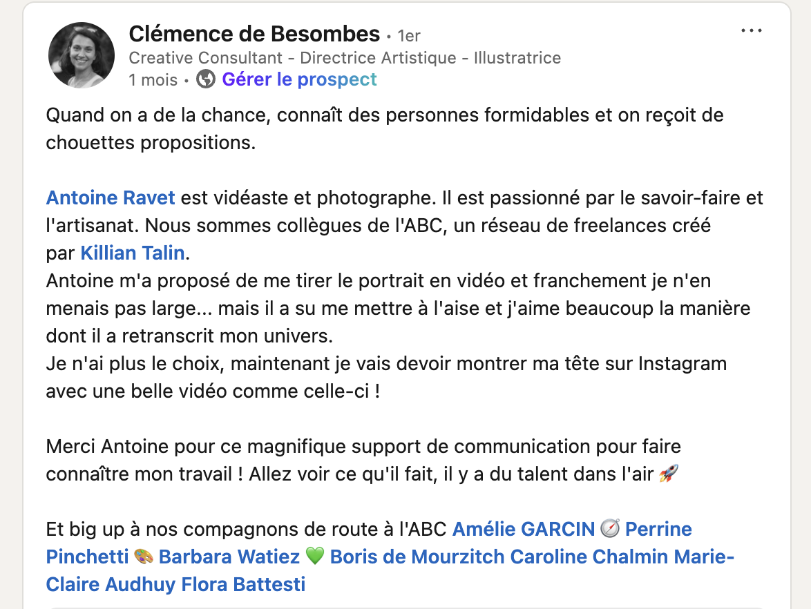 Je réalise des capsules vidéo qui vont au-delà du marketing : de vrais portraits, tournés sur le terrain, pour révéler la passion et la singularité de votre métier.